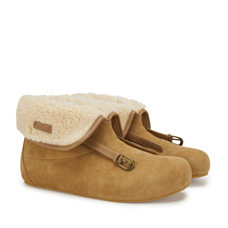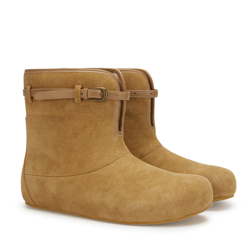 Camel Suede Leather Belt Boots