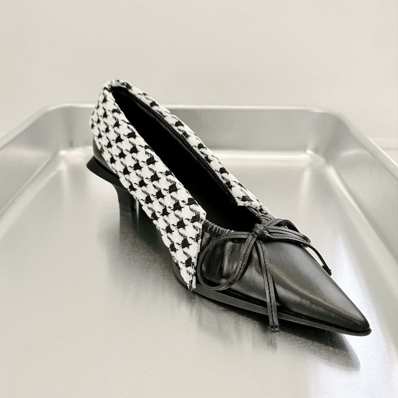This Black kitten heel comes with a Houndstooth collar by default. If you’d like a collar in another color, it can be purchased separately.